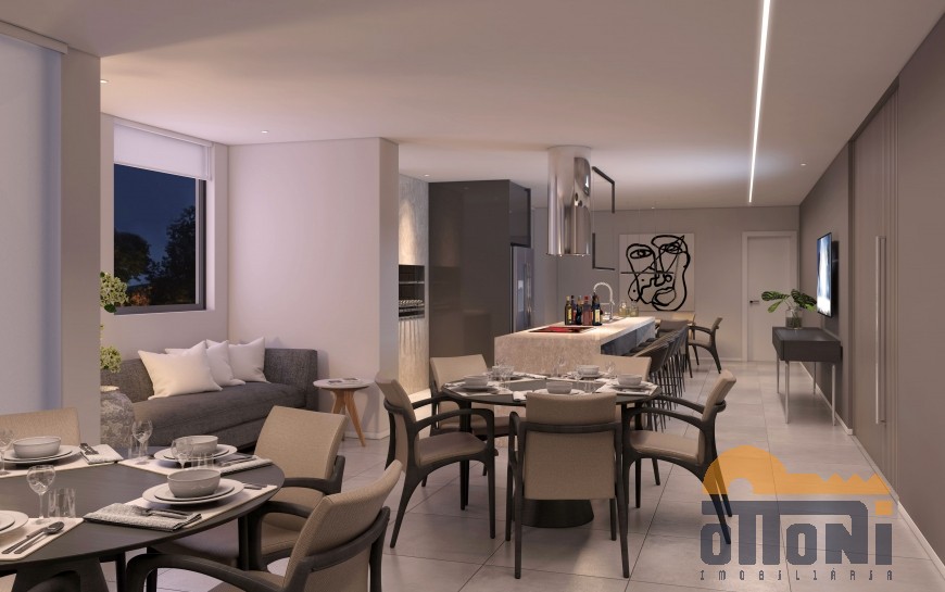 Living integrado com opção de estender o espaço, sacada com churrasqueira a carvão e vista panorâmica, cozinha planejada, área de serviço e área técnica.