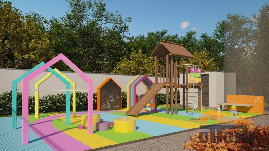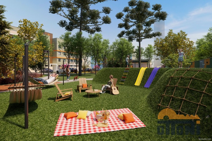 Portal de acesso, market place, bicicletário, praça de boas vindas, playground, espaço gourmet, family garden, pet place, jogos ao ar livre, bosque com vegetação nativa, quiosque, quadra de areia, elevadores e portaria.