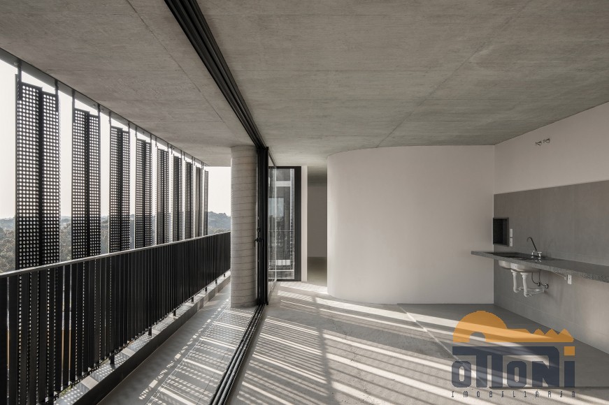 Living integrado, cozinha americana, churrasqueira integrada, sacada e varanda, lavabo social, área de serviço, lavanderia fechada, vista panorâmica, janelas piso ao teto, porcelanato, portas laqueadas, persianas motorizadas, duto para coifa, espera para split, infraestrutura para água quente, aquecimento a gás, medidores individuais, ventilação natural, isolamento acústico no piso, portas com vedação emborrachada, vidro laminado, brise solar, hall privativo, floreiras com irrigação automática.